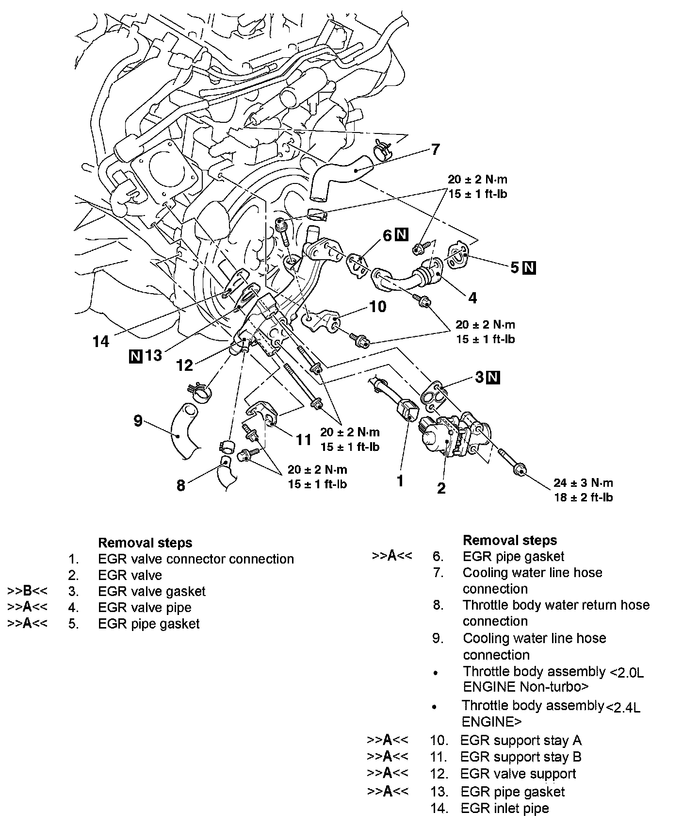 REMOVAL AND INSTALLATION [2.0L ENGINE NON-TURBO (VEHICLES FOR CALIFORNIA), 2.4L ENGINE]Pre-removal & Post-installation Operation: