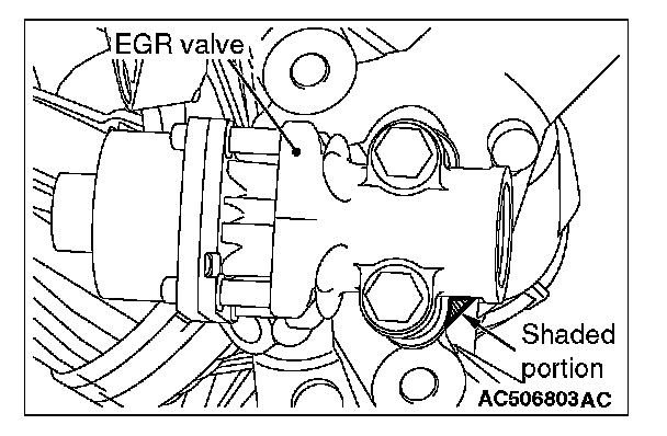 Install the EGR valve gasket so that its shaded portion is set as shown in the figure. Be sure to check which side of the gasket faces outside.