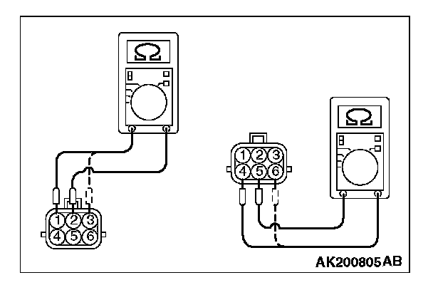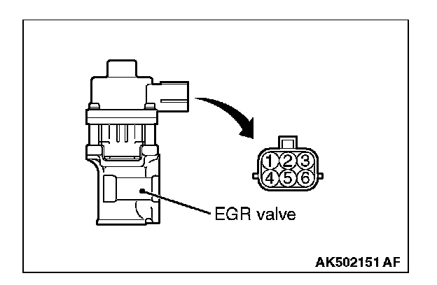 4. Measure the resistance between terminal No. 5 and either terminal No. 6 or terminal No. 4 of the connector at the EGR valve.