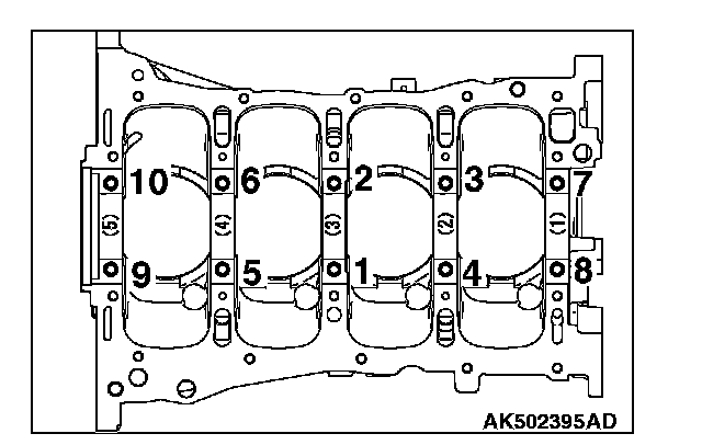 Distortion of cylinder block top surface mm (in) - Limit 0.05 (0.002)