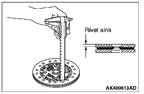 2. Measure the rivet sink. Replace the clutch disc if it is below the limit.