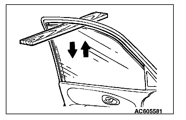 1. Place an approximately 10 mm (0.39 inch) thick wood chip as shown. Then, raise the window glass.