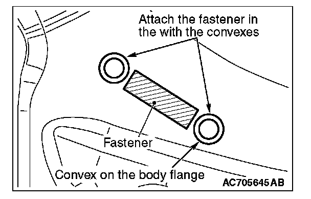 2. Install the fastener, rear window spacers, and glass stoppers to the specified positions so that there are no adrift or warped surfaces inside the rear window glass.
