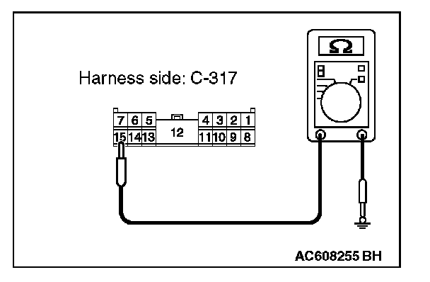 3. Measure the resistance value between ETACS-ECU connector C-317 terminal 15 and ground.