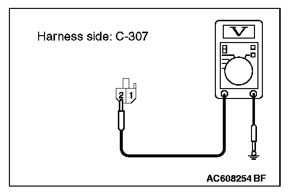 2. Measure the voltage between ETACS-ECU connector C-307 terminal 2 and ground.