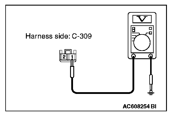 3. Measure the voltage between ETACS-ECU connector C-309 terminal 1 and ground.