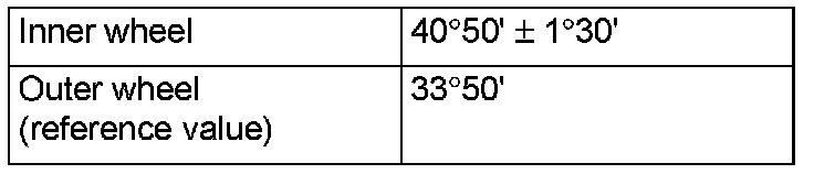 Caster 2° 40' ± 0° 30' (Left/right deviation within 30')