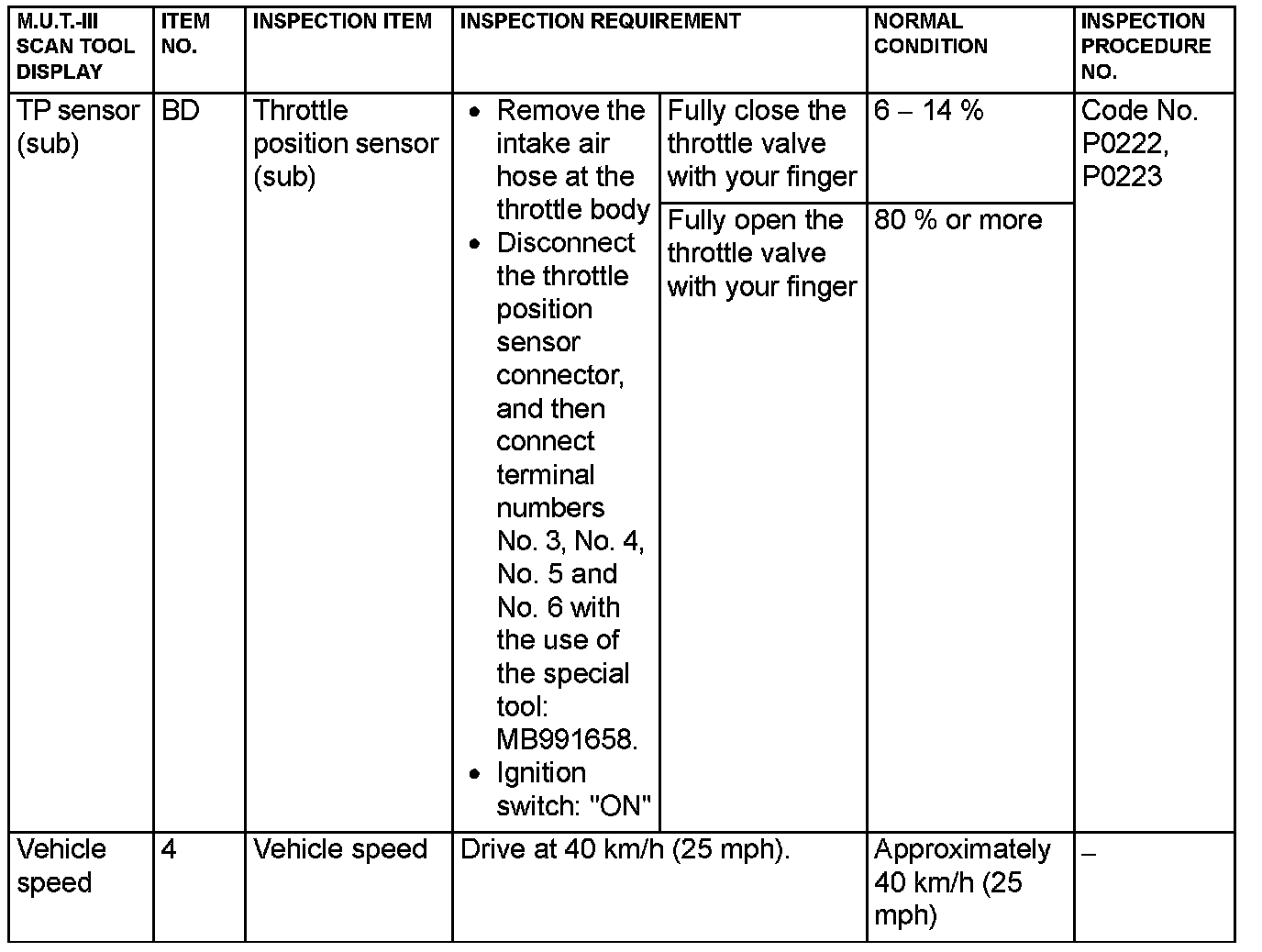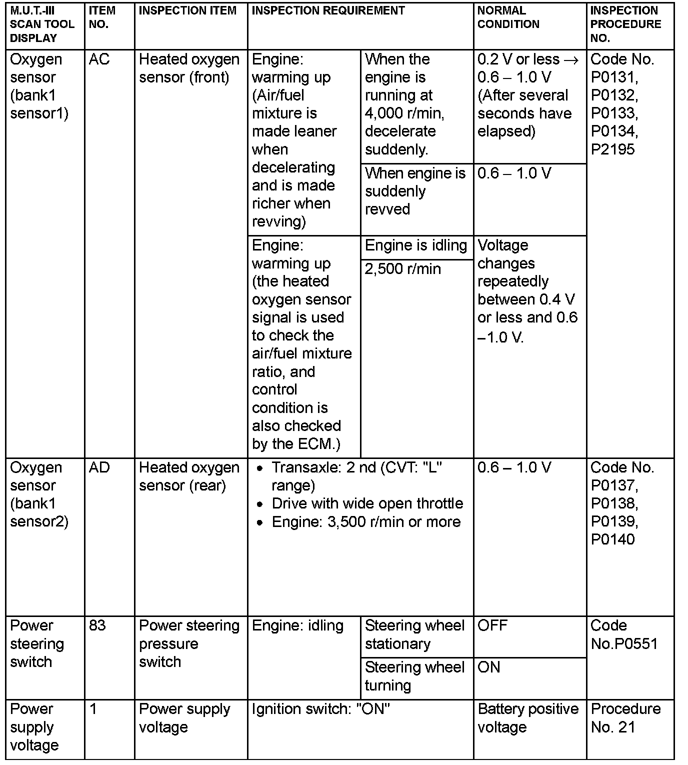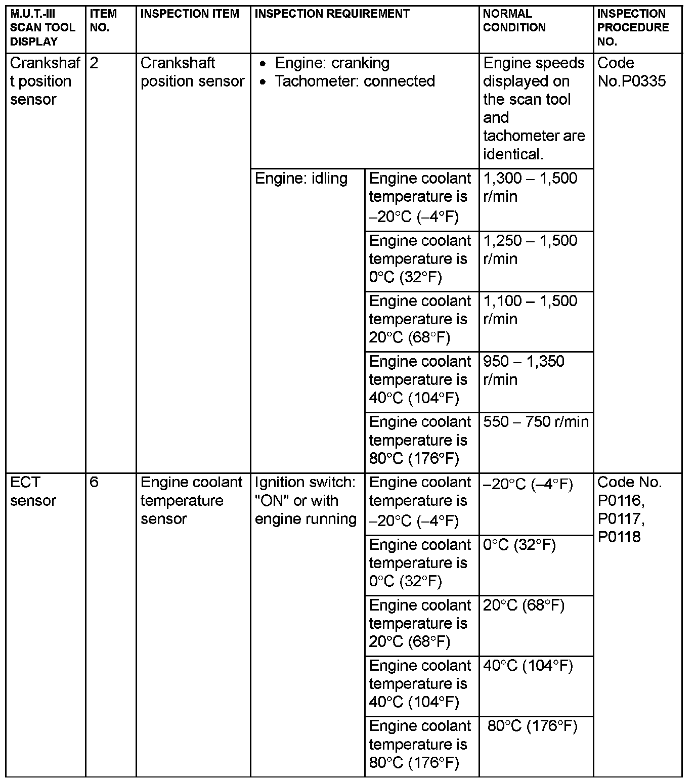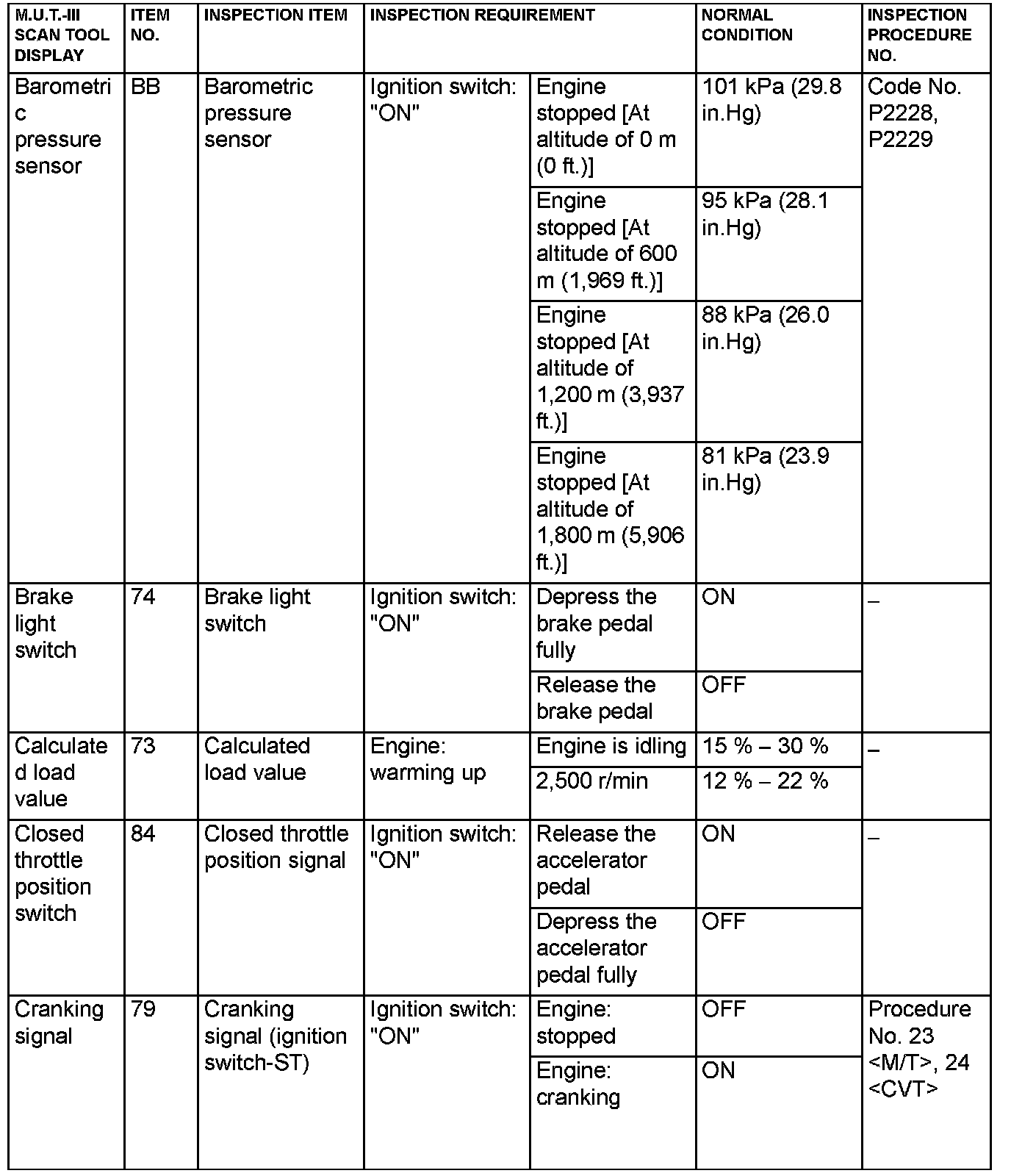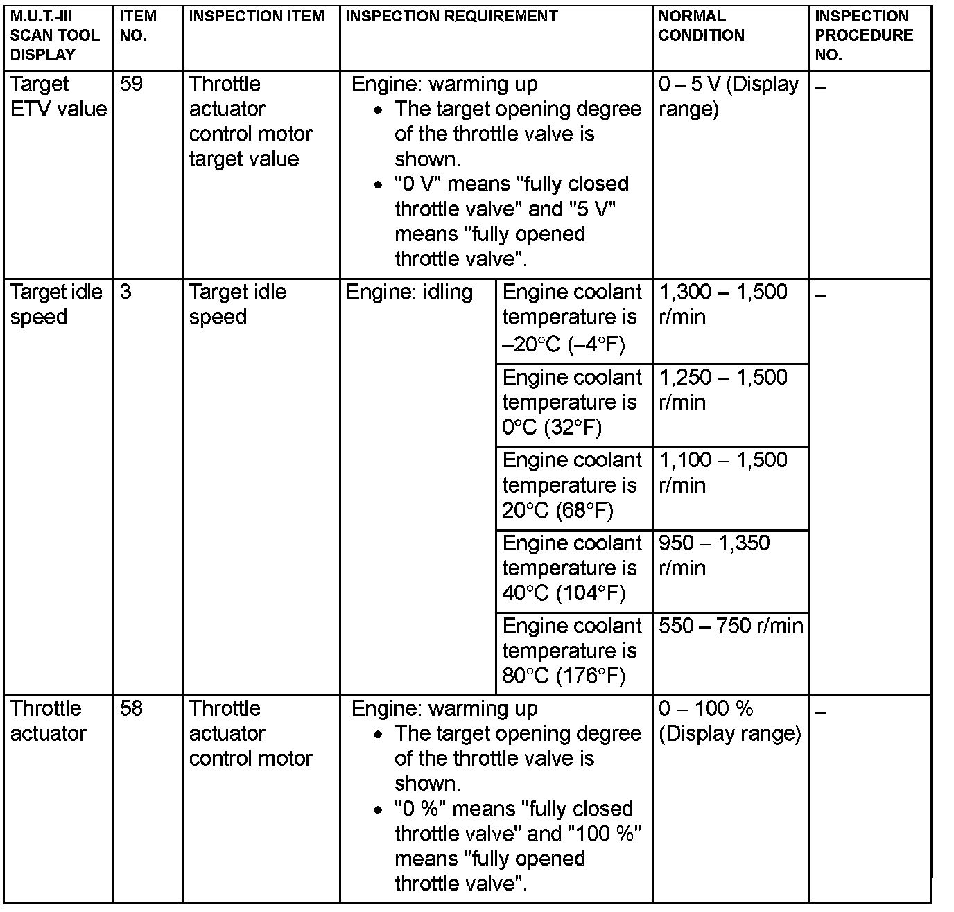 - 5*: Data items are displayed on M.U.T.-III display, but the in-line 4 engine is not applicable and its data is displayed as "N/A".