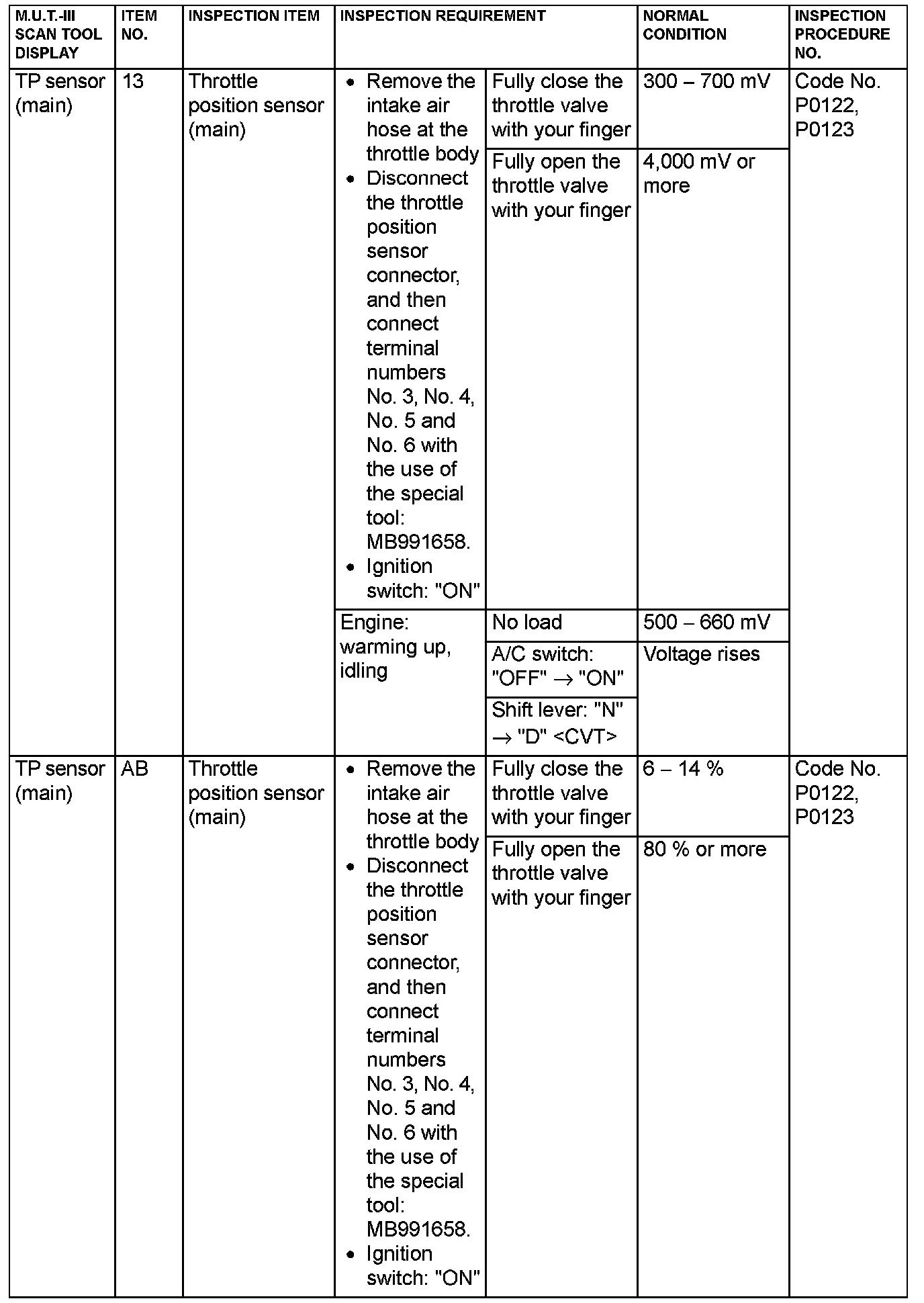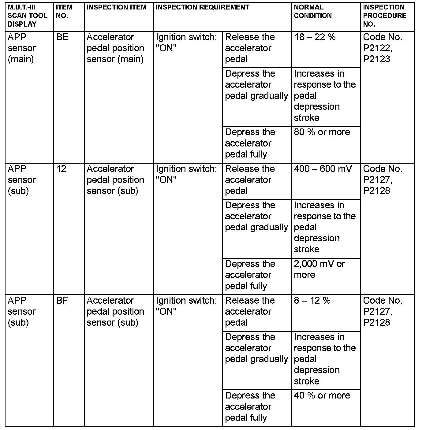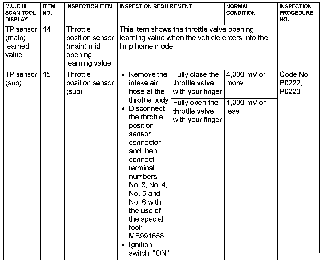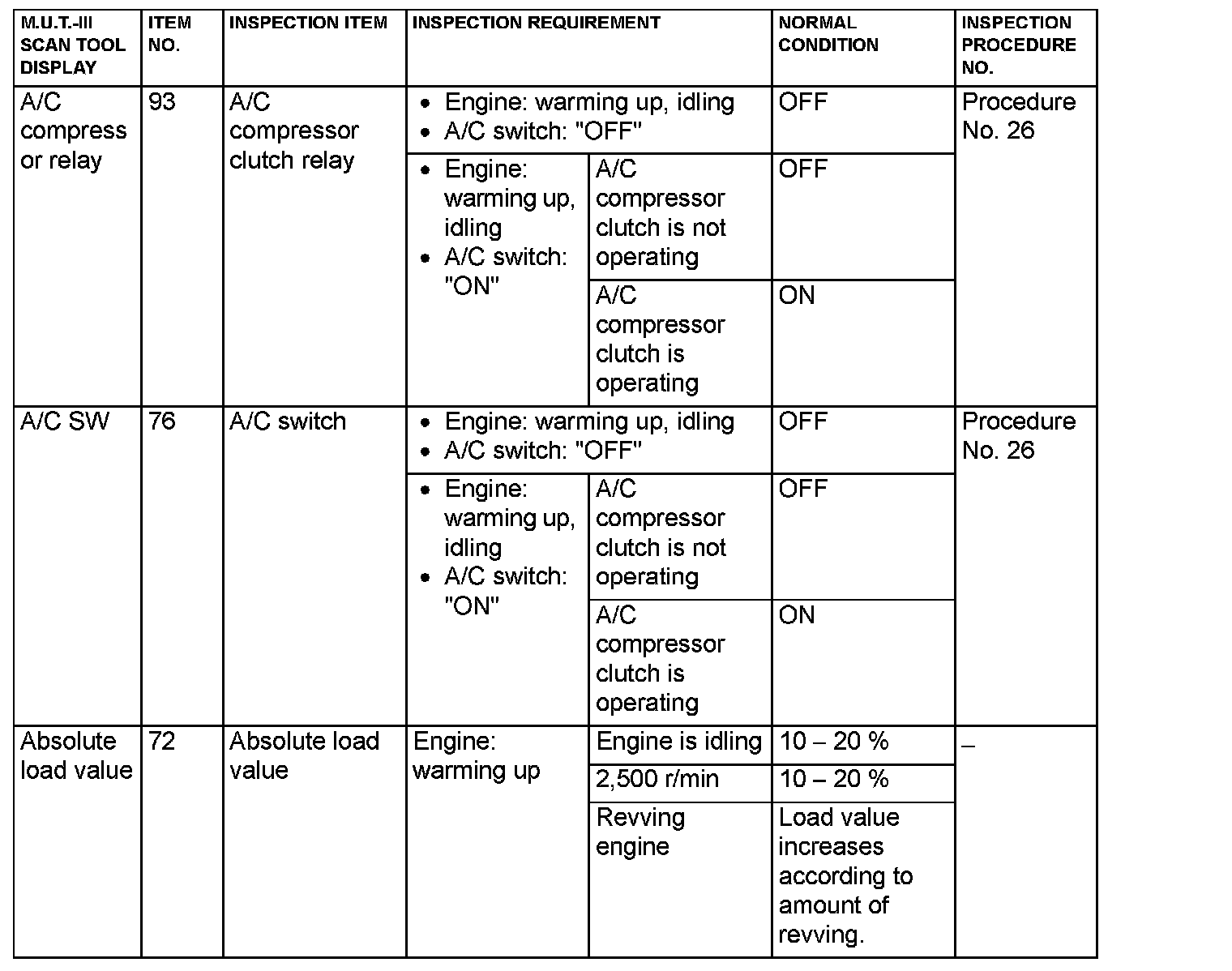 - 5*: Data items are displayed on M.U.T.-III display, but the in-line 4 engine is not applicable and its data is displayed as "N/A".