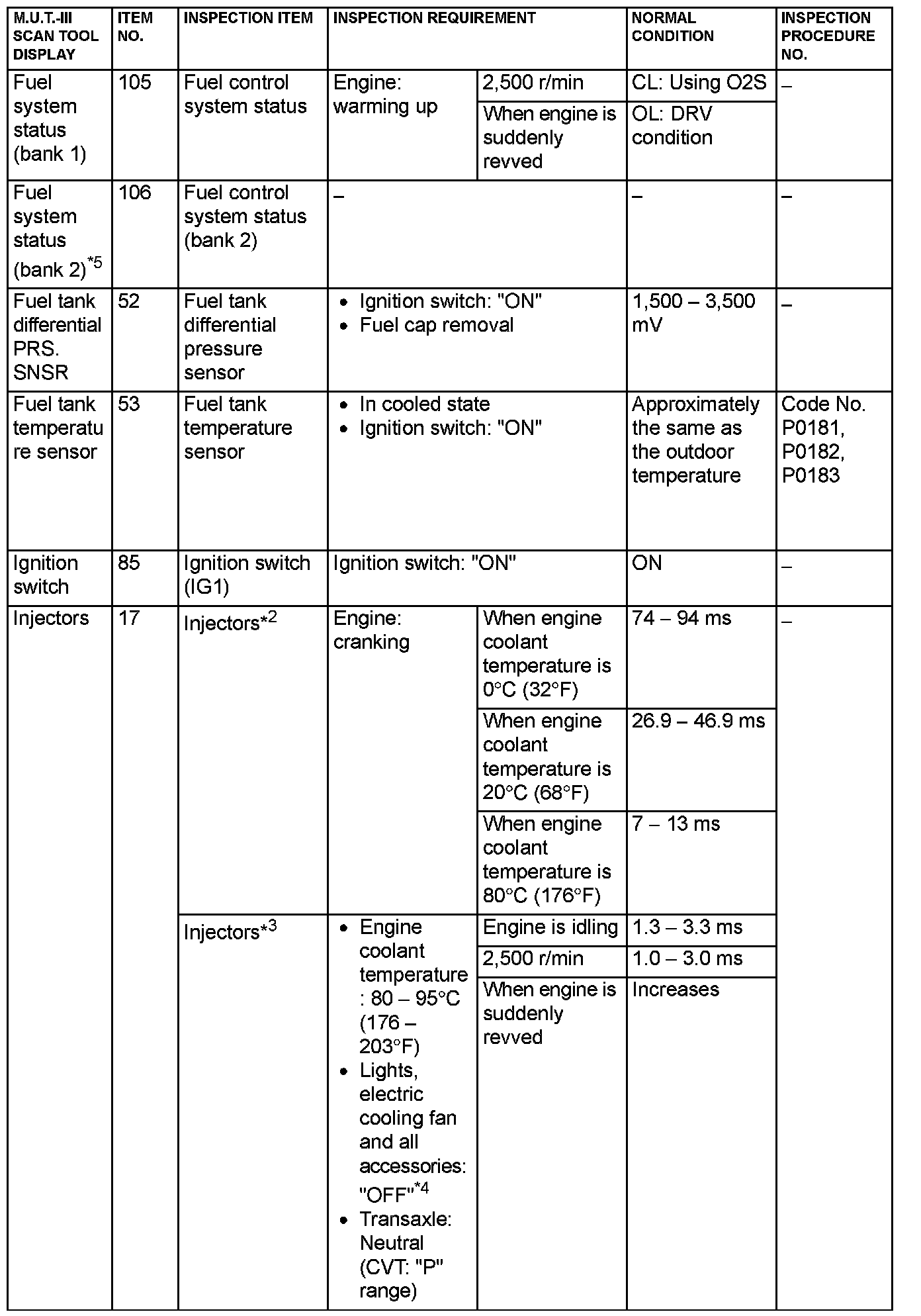 - 3*: In a new vehicle [driven approximately 500 km (311 mile) or less], the injector drive time is sometimes 10% longer than the standard time.