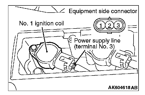 3. Set the timing light to the power supply line (terminal No. 3) of the ignition coil No. 1.