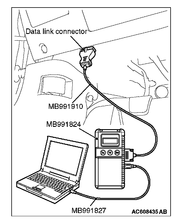 2. Connect scan tool MB991958 to the data link connector.