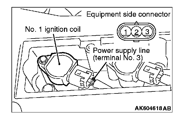 3. Set the timing light to the power supply line (terminal No. 3) of the ignition coil No. 1.