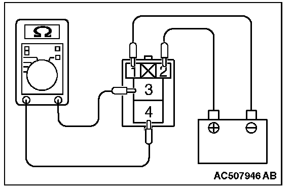 2. Use a jumper wire to connect the positive battery terminal (+) to the CVT control relay terminal No.2, and the negative battery terminal (-) to the terminal No. 1.