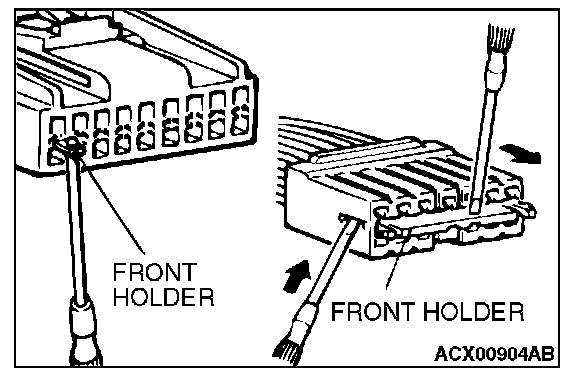 1. Insert a screwdriver [1.4 mm (0.06 inch) width] as shown in the figure, disengage the front holder, and remove it.