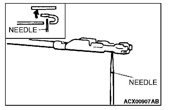 4. Insert a needle through the hole provided on the terminal and raise the contact point. Lightly squeeze the outer edge so the flats are parallel with the bottom.