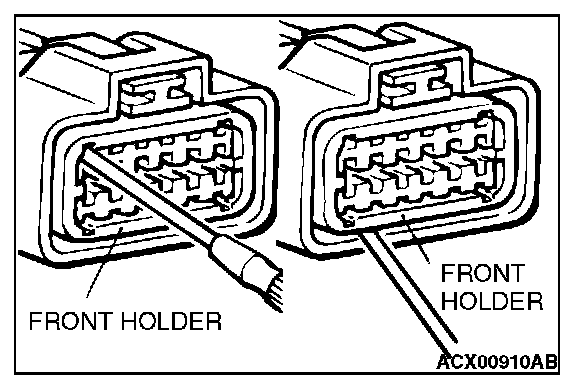 2. Push the harness wire of the terminal to be repaired deep into the connector from the harness side and hold it there.