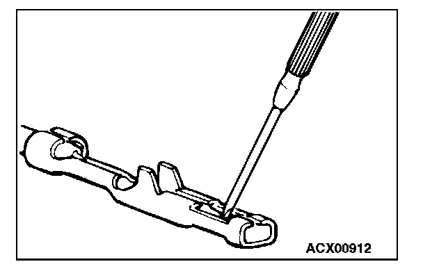 3. Press the contact point to the male terminal down by holding a screwdriver [1.4 mm (0.06 inch) width] as shown in the figure.