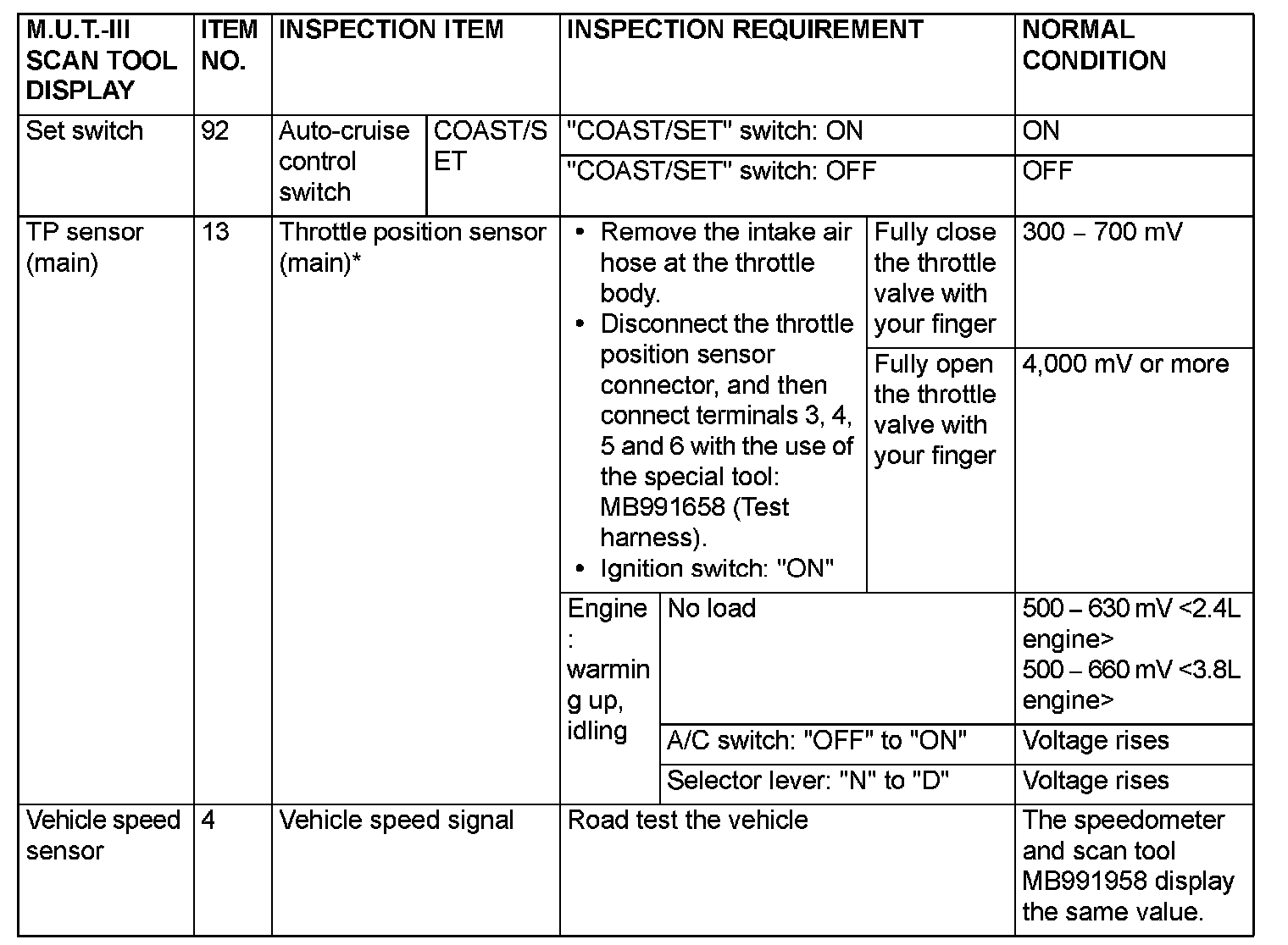 NOTE: *:After the inspection is completed, disconnect the throttle position sensor connector, and then delete the diagnostic trouble code using scan tool MB991958. Scan Tool Connecting