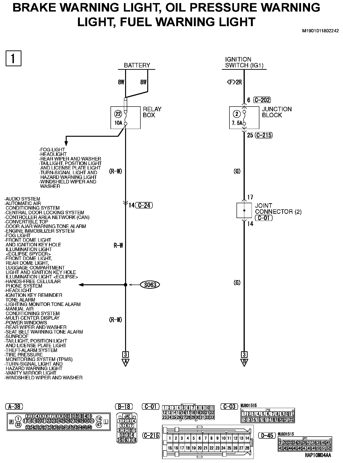Brake Warning Light, Oil Pressure Warning Light, Fuel Warning Light (Part 1):