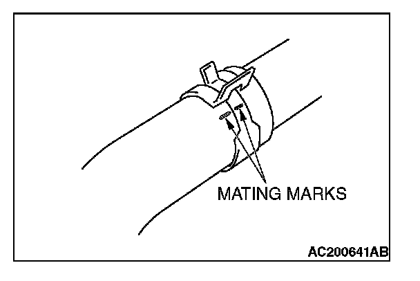 Make mating marks on the radiator hose and the hose clamp. Disconnect the radiator hose.