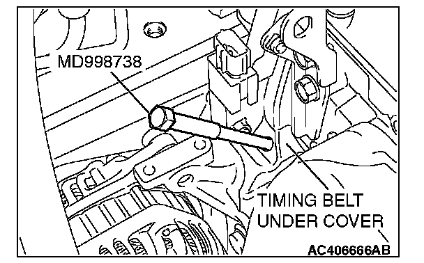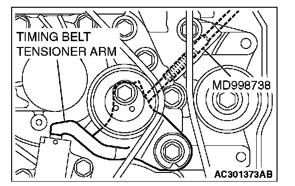 3. Screw in special tool MD998738 until it contacts the timing belt tensioner arm.