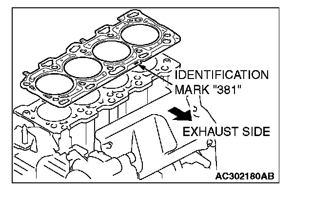 2. Assemble to the cylinder block so the cylinder head gasket identification mark of "381" is at the top surface and on the exhaust side.