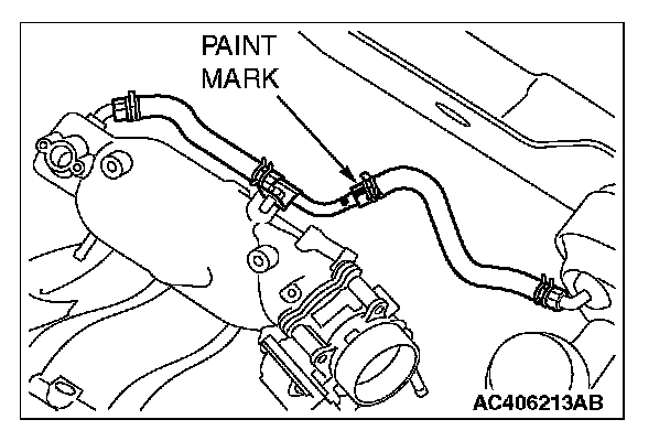 Insert the vacuum hose with its paint mark facing upward.