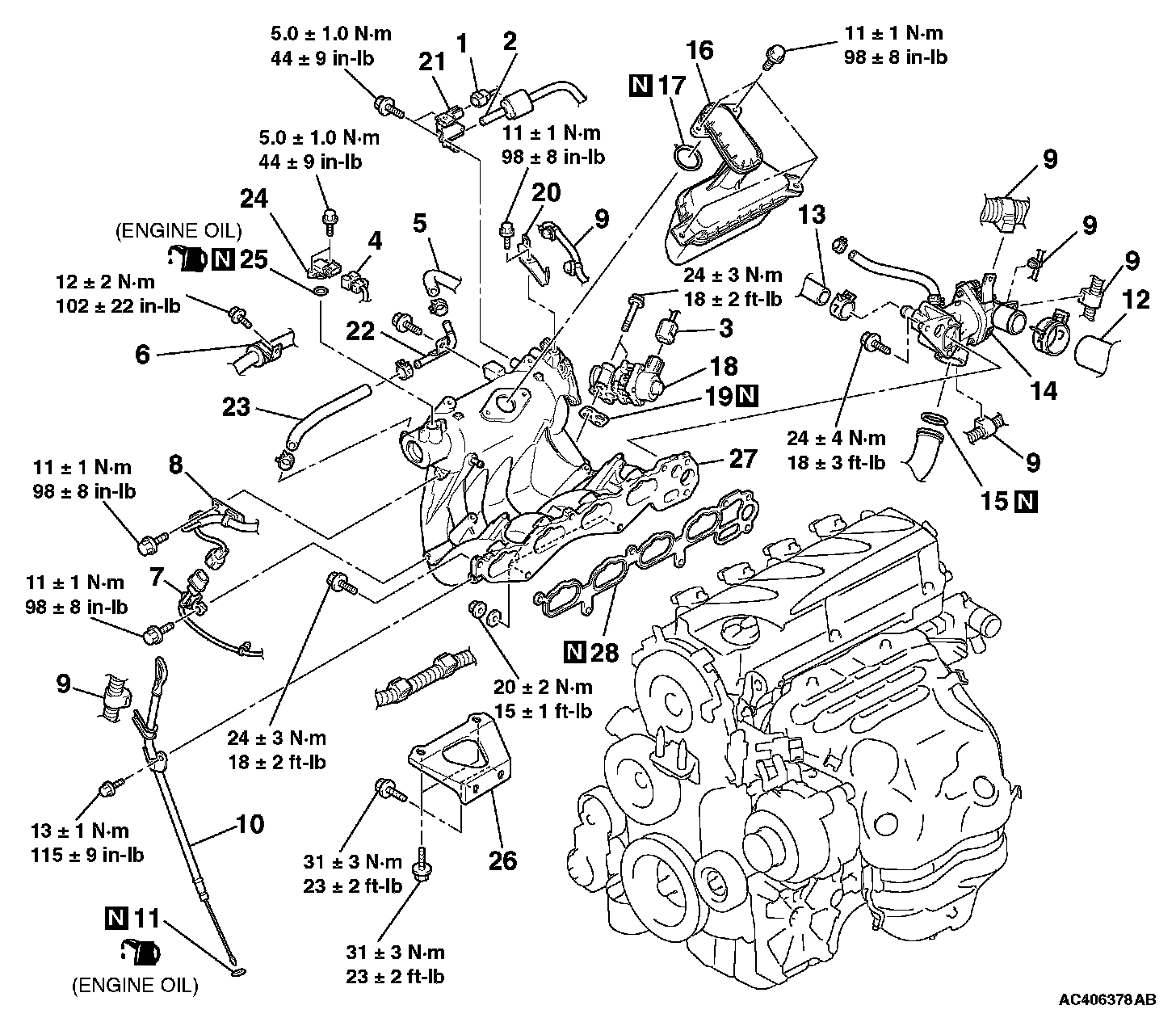 INTAKE MANIFOLDREMOVAL AND INSTALLATION [2.4L ENGINE]