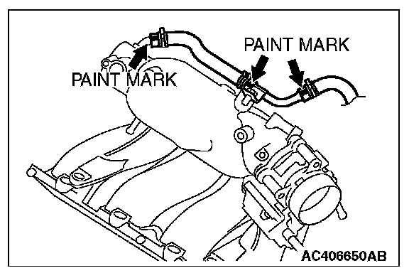 Insert vacuum hose with its paint mark facing upward.