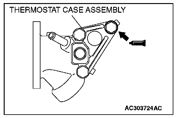 3. Apply sealant to the thread of the thermostat case assembly bolt as shown.
