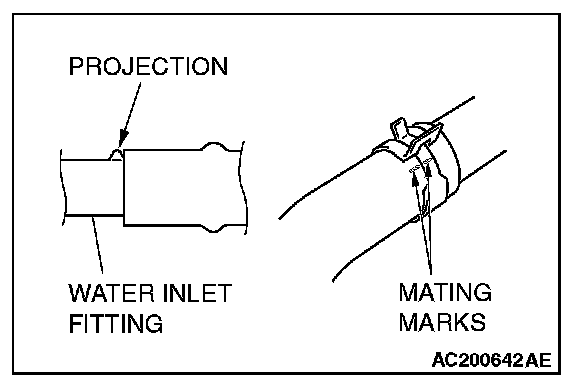 2. Align the mating marks on the radiator hose and hose clamp, and then connect the radiator hose.