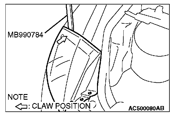 Before removing the rear combination light, disengage the claw shown in the illustration using special tool MB990784.