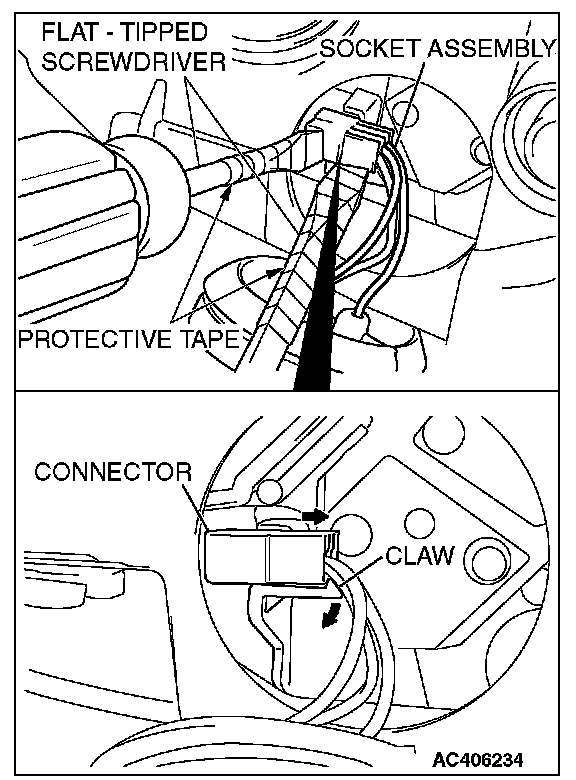 Remove the socket assembly connector using a flat-tipped screwdriver as shown.