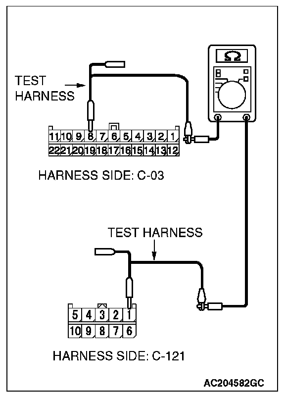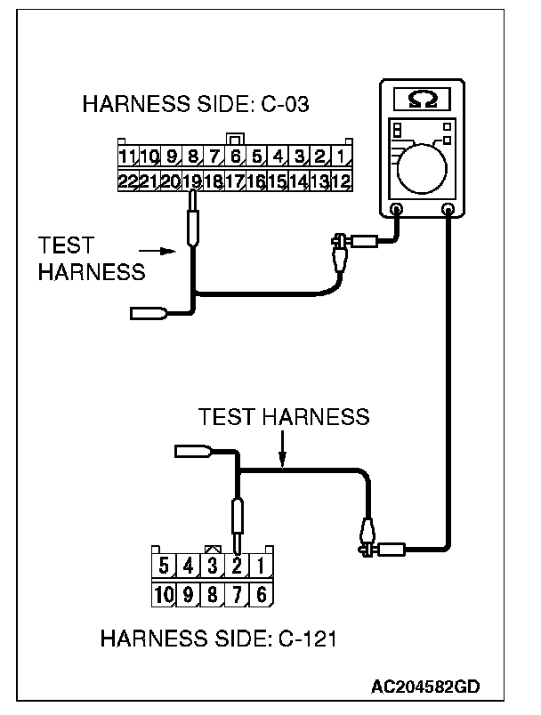 - The test wiring harness should be used.