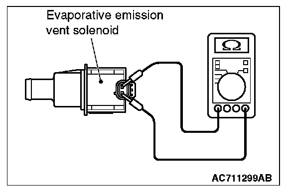3. Measure the resistance between the terminals of the evaporative emission ventilation solenoid.