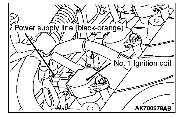 3. Set a timing light to the terminal No. 1 power supply line (black-orange) of the ignition coil No. 1.