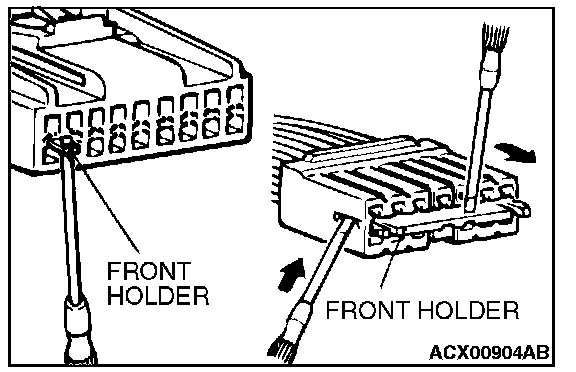 1. Insert a screwdriver [1.4 mm (0.06 inch) width] as shown in the figure, disengage the front holder, and remove it.