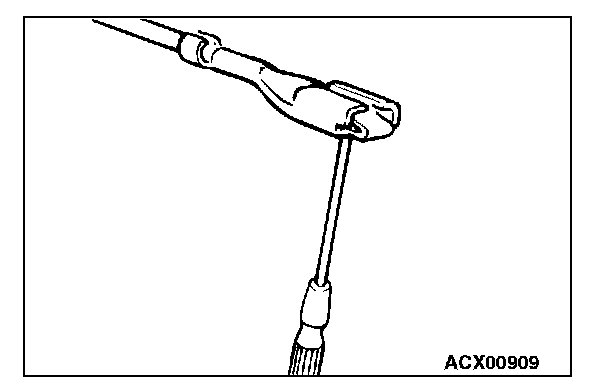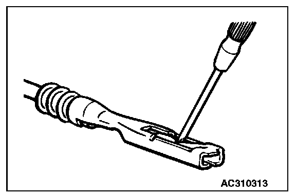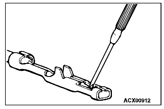3. Press the contact point to the male terminal down by holding a screwdriver [1.4 mm (0.06 inch) width] as shown in the figure.