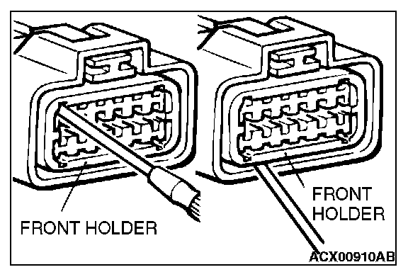 2. Push the harness wire of the terminal to be repaired deep into the connector from the harness side and hold it there.