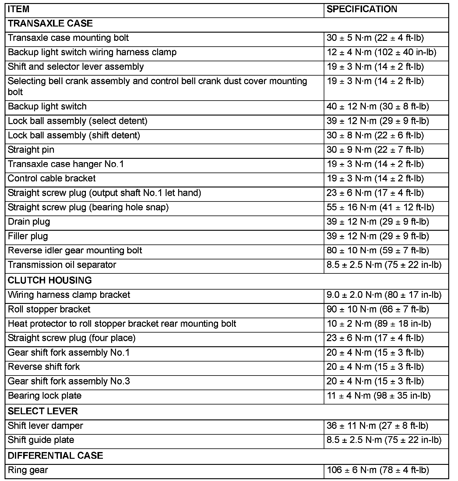 FASTENER TIGHTENING SPECIFICATIONS