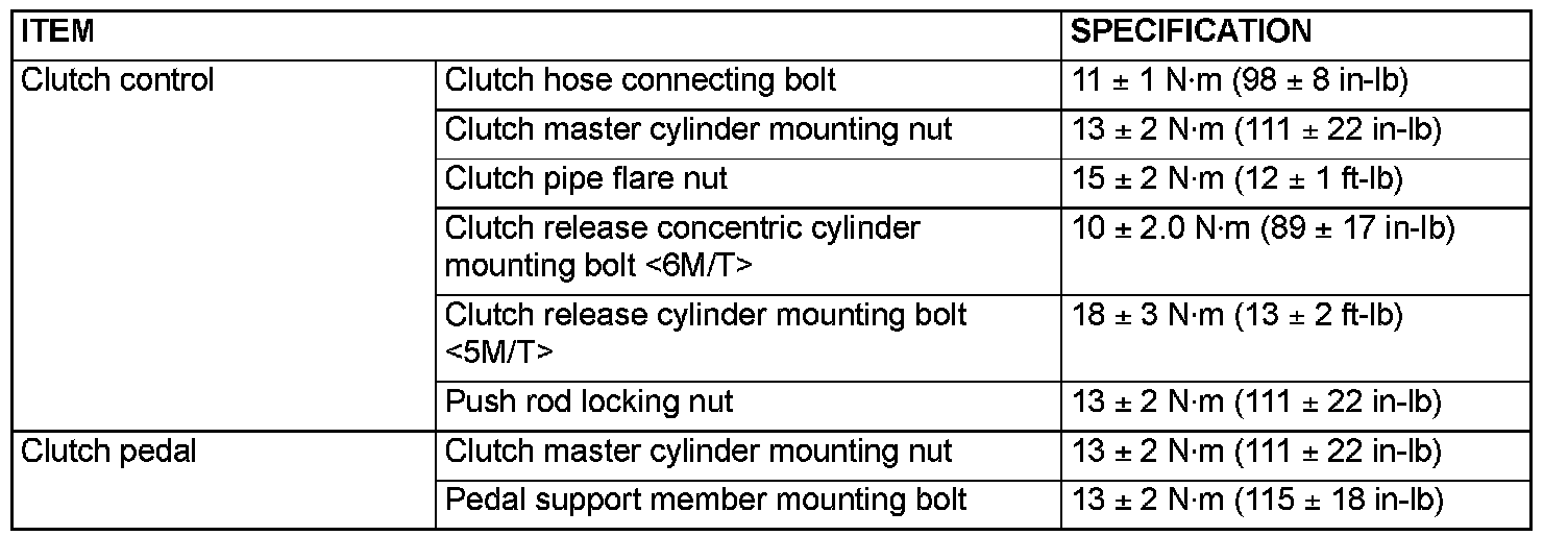 FASTENER TIGHTENING SPECIFICATIONS