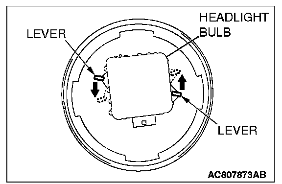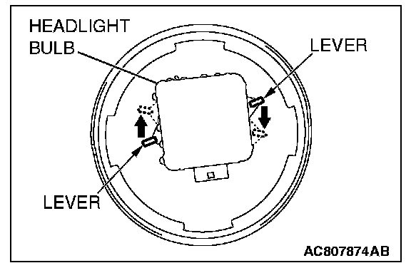 2. Operate the lever toward the direction shown and fix the headlight bulb.