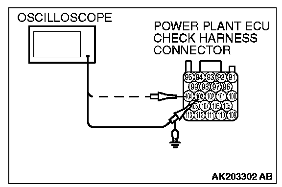 3. Connect the oscilloscope to check harness terminal No. 103. (Check the crankshaft position sensor signal wave pattern.)