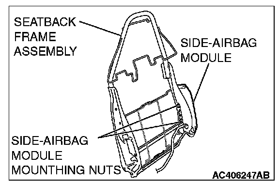 3. After disassembling the front seatback assembly, remove the side air bag module mounting nuts from the seatback frame assembly.