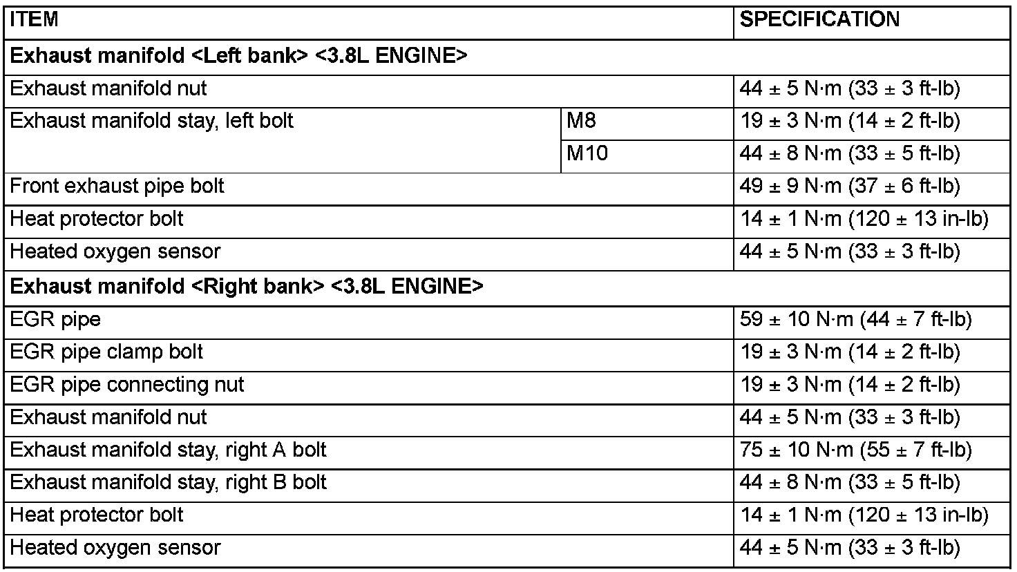 Exhaust Manifold - Fastener Tightening Specifications: