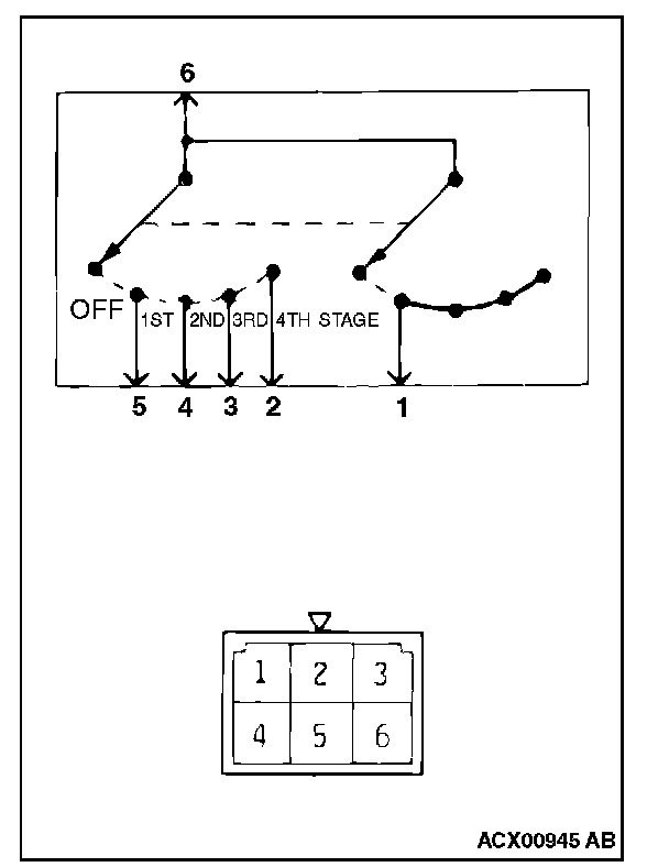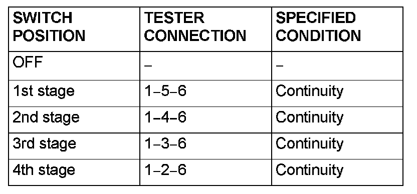 This figure illustrates a complex switch. The continuity between terminals at each position is as indicated in the table below.