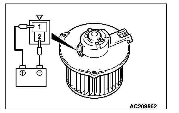 When battery voltage is applied between the terminals, check that the motor operates. Also, check that there is no abnormal noise.