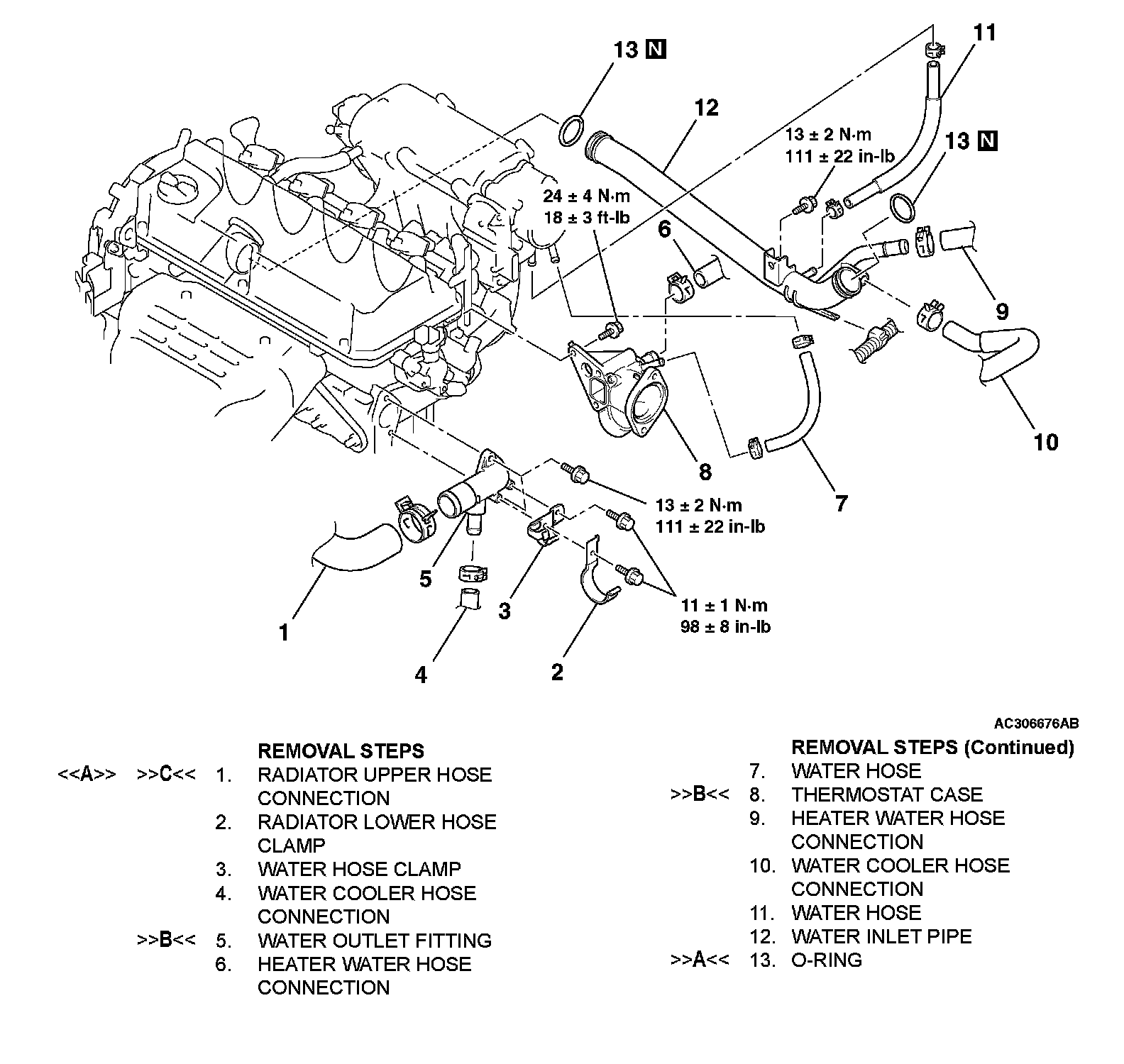 [Water outlet fitting] 13 ± 2 Nm (111 ± 22 in-lb.)