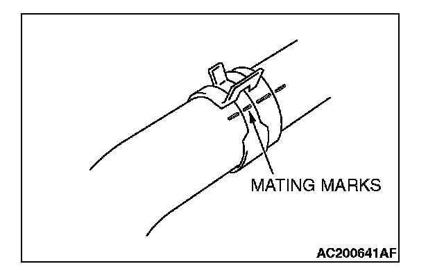 Make mating marks on the radiator upper hose and the hose clip as shown to install them in the original position. Disconnect the radiator upper hose.